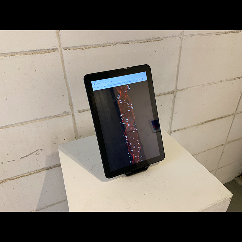 “Pne Aleinu Coding“ (“Show us your mercy”) is based on the text of the famous piyyut Freha Bat Yosef. Freha Bat Yosef (also known as Freha Bat Rabbi Abraham) was an 18th-century poet. She was born in Morocco, moved with her family to Algeria and then to Tunisia. Freha is unique for her time as a woman poet. Her poetry intertwines the personal destiny and history of the people of Israel: the history of exile and the desire for redemption. Since the publication of Professor Yosef Sheetrit, who discovered her magnificent poetry, Freha Bat Yosef's work has become a source of inspiration for poets, artists and musicians. The hymn “Pne Aleinu” is a request to the Almighty for the unification of the Jewish people. Each verse of this hymn begins with a Hebrew letter forming an ACROSTIC – the word of FREHA. Orange polyhedrons connect the letters ACROSTIC and “draw” a complex graphic system reminiscent of a rising sun or a dandelion flower, inside of which there is an endless cave-tunnel.