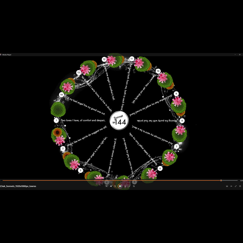 The Shakespe(AI)re Project is an artistic-scientific video installation in the realm of AI-Assisted art with artist-driven processing. Utilizing cutting-edge technologies, it bridges microbiology and medieval poetry. This project explores human relationships through artistic means by examining the processes of interaction and communication among bacteria.