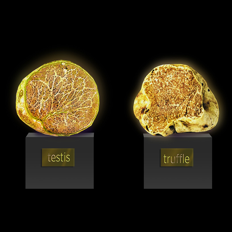 We have perused the currently available information that points to a link of this kind. Such information exists in religion, Oriental philosophies, folk beliefs, literature, naturopathy, and holistic medicine. Ultimately, virtually all of the above-mentioned sources have confirmed our hypothesis, which was based exclusively on a visual analysis of the forms. Thus, some practitioners of folk medicine believe that the pheromones contained in truffles improve human emotional well-being. The French, who have made this rare delicacy fashionable, refer to truffles as "natural Viagra". The reputation of these fungi as powerful aphrodisiacs derives from those pheromones: Such substances affect all the brain centers, improving male sexual potency and reproductive function. Truffles were a staple of the diets of Napoleon, Lord Byron, and Madame de Pompadour.
